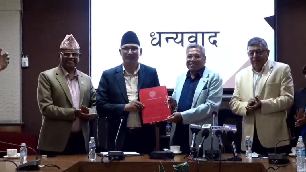 सोमवार सिंहदरबारमा आयोजित एक कार्यक्रमकाबीच नेपाल चेम्बर अफ कमर्सका अध्यक्ष कमलेशकुमार अग्रवालले उपप्रधान तथा अर्थमन्त्री विष्णुप्रसाद पौडेलसमक्ष एक सय एक बुँदे सुझाव पेश गरेका हुन् ।