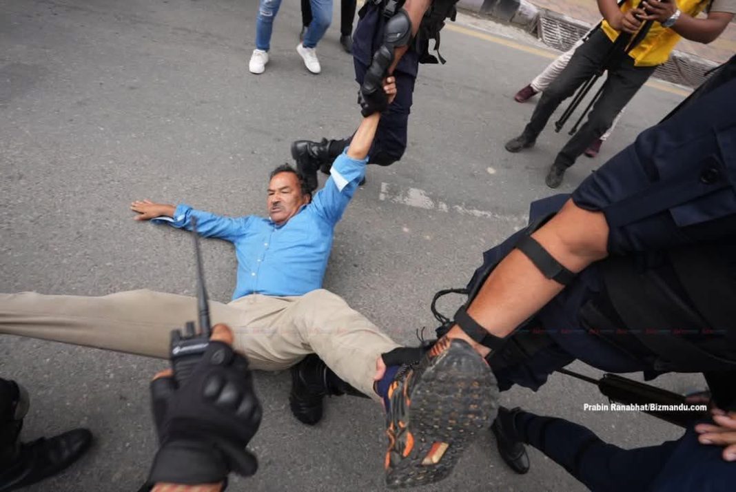 जिल्ला प्रहरी परिसर काठमाडौंका एसपी अपील राज बोहराका अनुसार, नारायणचौरबाट प्रर्दशनमा निस्किएको राजावादीहरूको समूह बालुवाटारमा प्रहरीले राखेको ब्यारियर तोडेर अघि बढ्न खोजेपछि थापासहित पाँच जनालाई नियन्त्रणमा लिइएको हो ।उनका अनुुसार, पक्राउ परेका सबैलाई अहिले जिल्ला प्रहरी परिसर, भद्रकाली ल्याइँदैछ ।