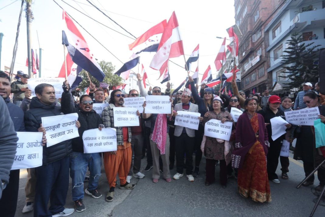 काठमाडौं । नेपाली काँग्रेसको आन्तरिक विवाद उत्कर्षमा पुगेको छ । निर्वाचन आयोगले विशेष महाधिवेशनबाट निर्वाचित गगन थापा नेतृत्वको कार्यसमितिलाई पार्टीको आधिकारिकता प्रदान गरेपछि शेरबहादुर देउवा पक्षधर नेताहरूले सो निर्णयलाई अवैधानिक र दुराशयपूर्ण भएको भन्दै सडक प्रदर्शनमा उत्रिएका छन् ।