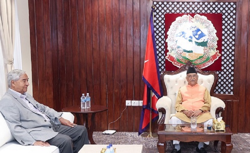 प्रधानमन्त्री ओली, काँग्रेस सभापति देउवा र गृहमन्त्री लेखकबीच छलफल