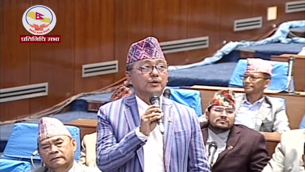 उनले भने, ‘राजावादी र गणतन्त्रविरोधीलाई तह लगायौं भनेर गंका पिटेर जनतालाई भ्रम छरेको के रहेछ, छट्टु स्यालको कथा पो रहेछ । चिल आयो, चिल आयो भन्ने अनि तल टिप्ने ? जनताको ध्यान एकातिर लगेर दुई ठूला–ठूला पार्टीबीच सरकार बनाएर देश लुटेर बस्ने अनि जनताले टुलुटुलु हेरेर बसनुपर्ने ? यो कुरा कदापि सह्य हुदैन सभामुख महोदय । यसको प्रतिवाद हुन्छ । हामी संसदबाट विरोध गरिरहेका छौं र आवश्यक प¥योभने हामी सडकबाट पनि प्रतिवाद गरिन्छ । दुई दलहरुले भिजिट भिसाको विरोधमा आवाज उठाइरहेका छौं । यसको गलत व्याख्या नगरियोस् । भिजिट भिसामा जाने मानिसको विरोध गरिएको होइन । विदेश जाँदा खेरी मान्छे भिजिट भिसामै जाने हो । जसरी रकम असुली गरेर बेरोजगार युवाहरुको रोजगारी खोज्ने चाहानामाथि कमाउने सरकारको सुनियोजित धन्दाको हामीले विरोध गरेका हौं । म सभामुखको ध्यानाकर्षण गराउन चाहान्छु सभामुद महोदय, यो संसदीय इतिहासमा कालो समय हो । संसदका दुई महत्वपूर्ण राजनीतिक दलहरुले डेढ महिनादेखि संसदमा विरोधमा गर्दाखेरी जुन संसद चलाउने प्रयास भइरहेको छ । केवल सरकारको अकर्मण्यता र उदासिनता मात्र होइन तपाईको आफ्नो कार्यकालको सबैभन्दा कालो समयको रुपमा उल्लेख रहनेछ ।’