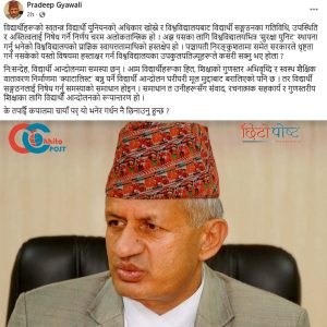 नेता ज्ञवालीले पञ्चायतकालमा समेत सरकारले विद्यार्थी संगठन खारेज गर्ने आँट नगरेको अवस्थामा अहिलेको सरकारको यो धृष्टतामा उपकुलपतिहरुले कसरी हस्ताक्षर गरे होलान् भनी प्रश्न समेत गरेका छन् । विद्यार्थी आन्दोलनमा केही समस्या देखिएको र मुलमुद्दाबाट दायाँबायाँ भएको उनको भनाइ छ।